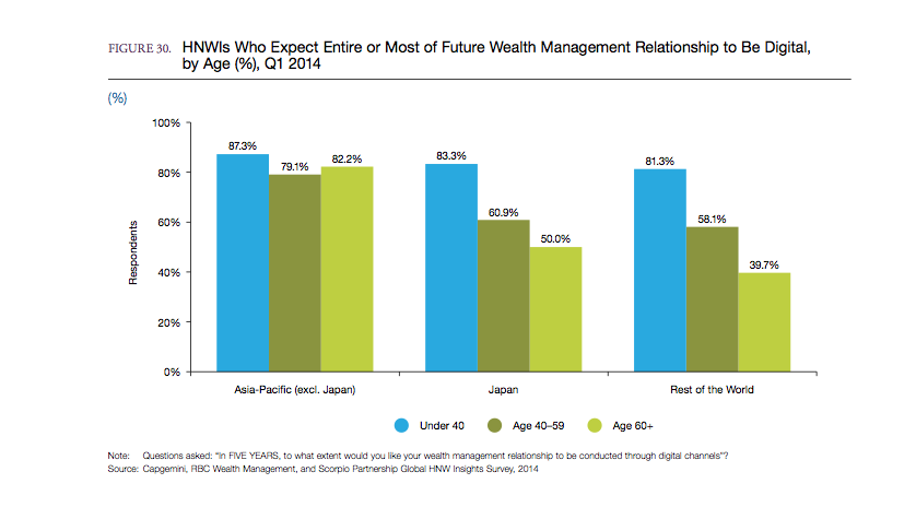 Asiaten denken in dieser Hinsicht anders als Europäer. Zu diesem Schluss kommt eine neue Erhebung der Beratungsfirma Capgemini und dem Private-Banking-Anbieter RBC Wealth Management. Exakt 82 Prozent der Reichen in Asien (ohne Japan) gehen davon aus, dass in fünf Jahren die Kundenbeziehung in der Vermögensverwaltung hauptsächlich auf digitalen Kanälen erfolgen wird.