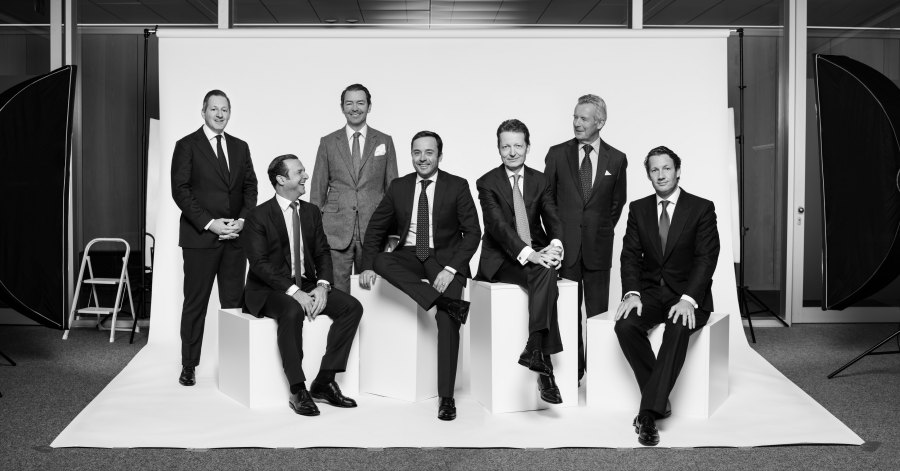 (Pictets Partner: Boris Collardi, Laurent Ramsey, Remy Best, Bertrand Demole, Renaud de Planta, Nicolas Pictet und Marc Pictet, fotografiert von Jillian Edelstein)