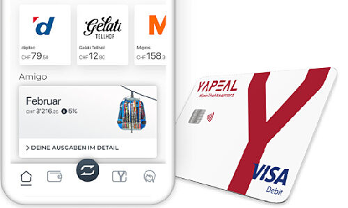 Über Yapeal gelangt so die erste Debitkarte von Visa in die Schweiz. Yapeal bietet über eine App ein direkt angebundenes Bankkonto sowie eine personalisierbare IBAN an. Mit der Visa-Debit können Kunden kontaktlos über Smartphone oder Smartwatch bezahlen.