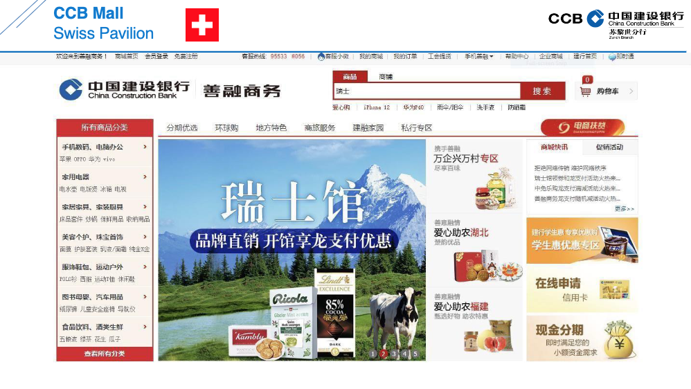 Um die Zusammenarbeit zu vertiefen, hat Gongs Arbeitgeberin auch ihre eigenen Vertriebskanäle für Firmen wie Ricola geöffnet. Via das bankeigene Internetportal (Bild oben) und das riesige Filialnetz vertreibt die chinesische Grossbank die Ricola-Produkte in China. Das soll helfen, Schweizer Qualitätsmarken in der Volksrepublik bekannt zu machen, sagt Gong. Damit ist wohl auch die Hoffnung verbunden, dass der Slogan auf den Bonbonschachteln gelesen wird.