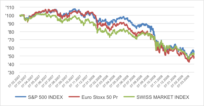 Börsenentwicklung zwischen Februar 2007 und März 2009