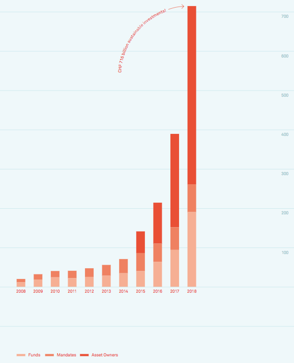 Die Zahlen zumindest sind ermutigend. Laut Berechnungen der Branchen-Vereinigung Swiss Sustainable Finance (SSF) waren Ende 2018 rund 717 Milliarden Franken der Anlagen in der Schweiz nach ESG-Kriterien angelegt. Dies entspricht 20 Prozent der Anlagen, bei denen die Finanzinstitute beim Anlageentscheid mitreden können – das ist knapp das Doppelte des globalen Durchschnitts, der bei 11 Prozent steht.