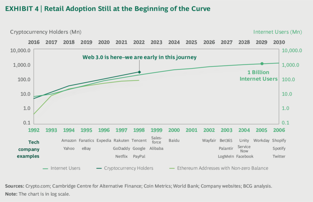 BCG geht davon aus, dass die zunehmende Verbreitung von Krypto-Börsen der Schlüssel zum Wachstum der Krypto-Adoption ist. Auch das Metaverse und nicht-fungible Token (NFT) spielen eine wesentliche Rolle. Die Reise in Richtung Web3 werde durch Entwicklungen in Bezug auf nicht-fungible Token (NFT) und das Metaverse ermöglicht, heisst es. Die Studienautoren erwarten, dass diese beiden Sektoren in den kommenden Jahren ebenfalls eine hohe Akzeptanz erreichen werden.