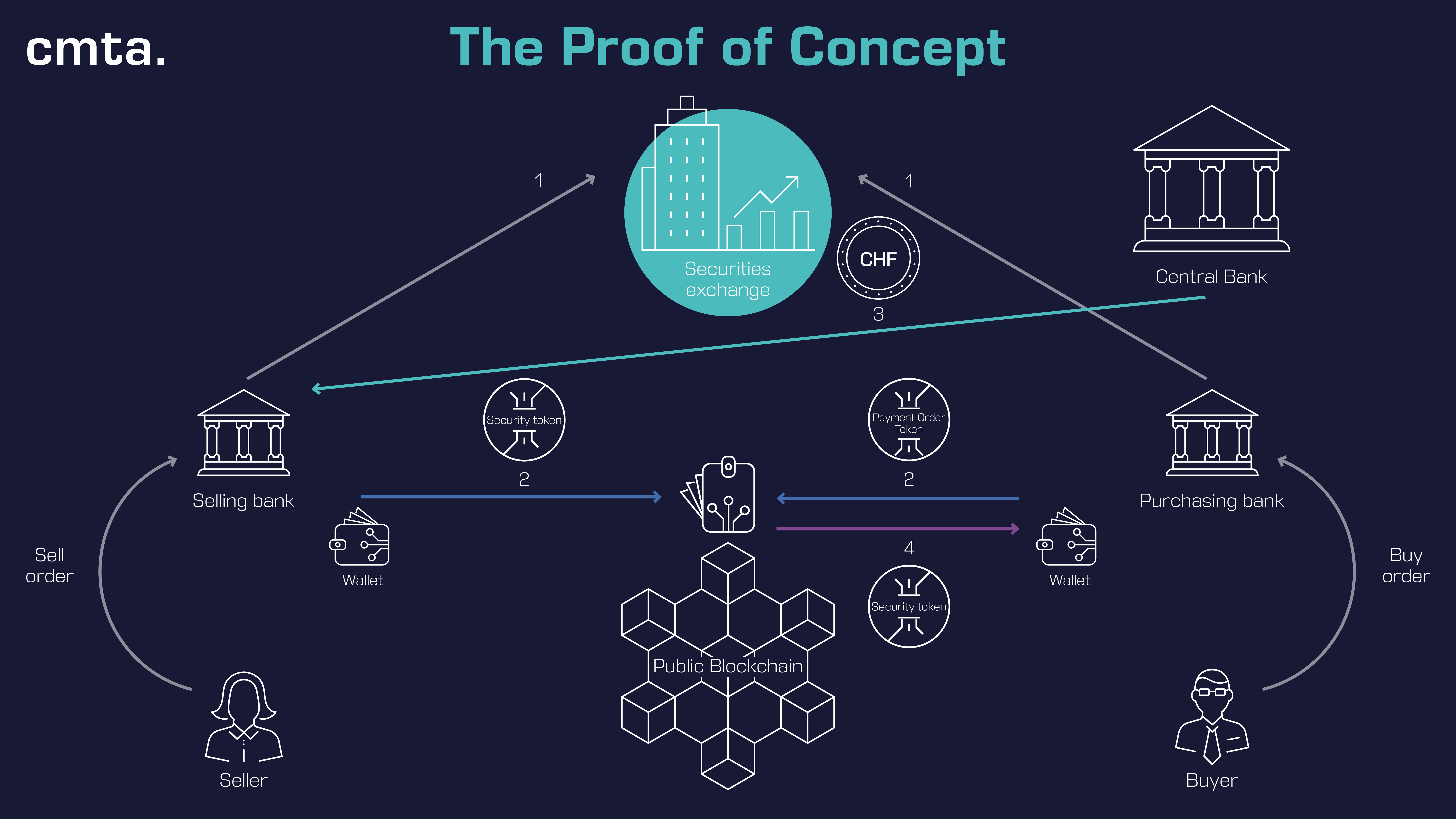 Der «Proof of concept» wurde unter der Führung der CMTA durchgeführt; dabei handelt es sich um eine regierungsunabhängige Organisation, die Standards im Blockchain-Sektor entwickelt. Unterstützung erhielt die CMTA von diversen Firmen wie die BX Swiss, die Credit Suisse, Homburger, Lenz & Staehelin, Metaco, Pictet, Targens, Taurus, die UBS und Vontobel.
