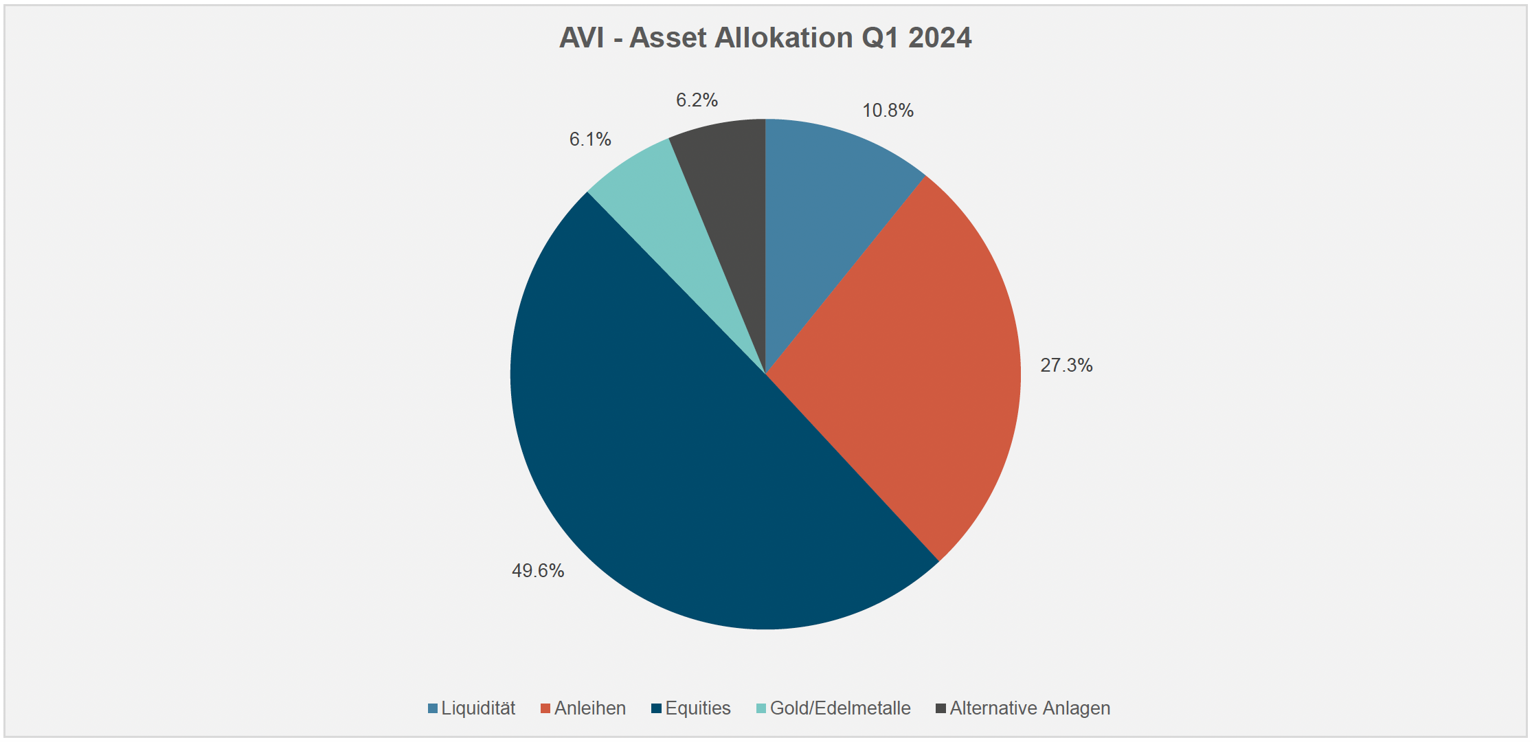 In ihrer Asset Allocation messen die EAMs viel Gewicht den Aktienanlagen sowie dem Gold bei (vgl. nachstehende Grafik). Beide Investmentklassen erhalten gegenüber einem ausgewogenen Portefeuille eine deutlich Übergewichtung.
