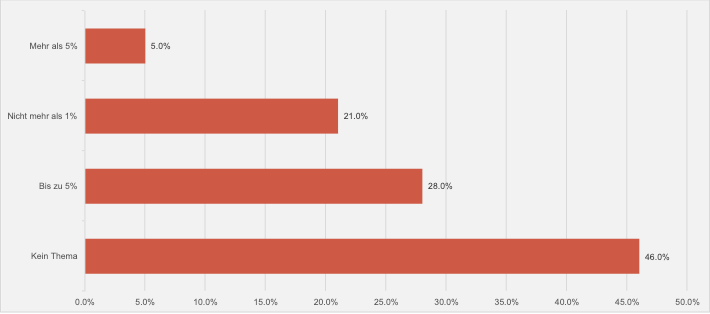 Wie die Umfrage zeigt, ist dies mehrheitlich nicht der Fall. Ganze 46 Prozent der befragten Vermögensverwalter gaben an, dass Bitcoin & Co. für sie kein Thema seien. Immerhin 28 Prozent räumen ein, bis 5 Prozent in ein Mandat zu packen.