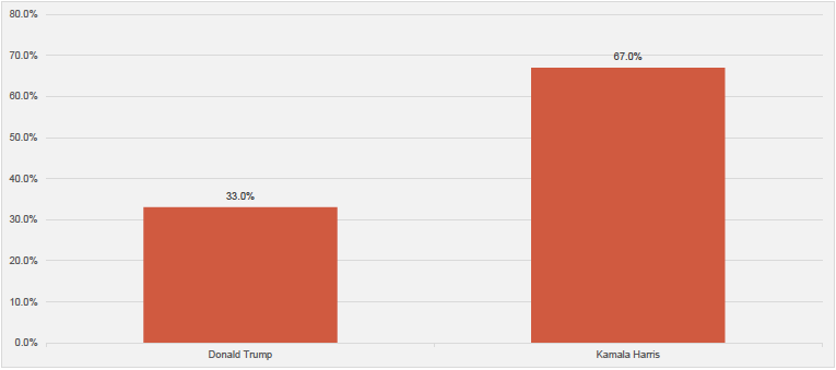 Aus der Erhebung geht überdies hervor, dass in der politischen Wahrnehmung der Schweizer Vermögensverwalter ein Meinungsumschwung stattgefunden hat. Neu gehen 67 Prozent der Befragten davon aus, dass Kamala Harris die US-Präsidentschaftswahl gegen Donald Trump gewinnen wird. Zuvor, als noch Joe Biden im Rennen stand, dominierte die Überzeugung, dass Trump gewinnen würde. Das hat sich nun offensichtlich deutlich geändert (vgl. nachstehende Grafik).