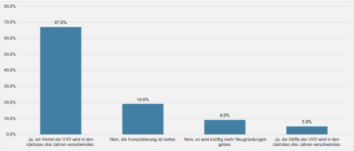 Gut 5 Prozent der Umfrageteilnehmenden gehen gar davon aus, dass die Hälfte der unabhängigen Vermögensverwalter hierzulande verschwinden wird (vgl. nachstehende Grafik). Die diversen Schätzungen über die aktuelle Zahl an unabhängigen Vermögensverwaltern hierzulande schwanken zwischen 1'500 und 2'000.