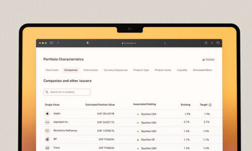 Mit der neuen Funktion können die im Portfolio gehaltenen Einzeltitel, also Aktien und Anleihen, sofort eingesehen, mit wenigen Mausklicks angezeigt und durchsucht werden, heisst es in einer Mitteilung vom Donnerstag. ETF Lookthrough steht auch in den kostenlosen virtuellen Probe-Portfolios zur Verfügung.
