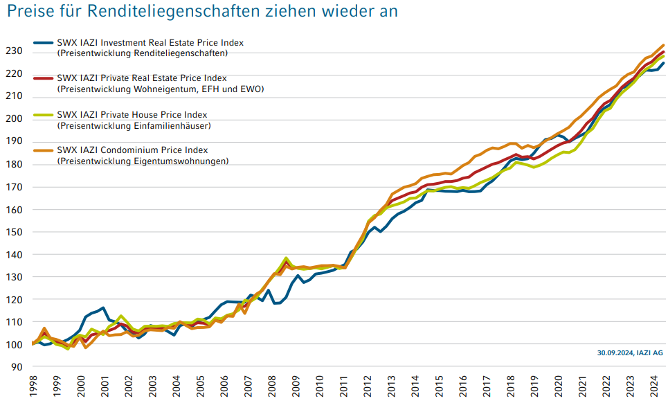 Seit Herbst 2022 gab es am Markt für Renditeliegenschaften Anzeichen von Schwäche. Doch nach den letzten Zinssenkungen der SNB ziehen die Preise nun wieder an.
