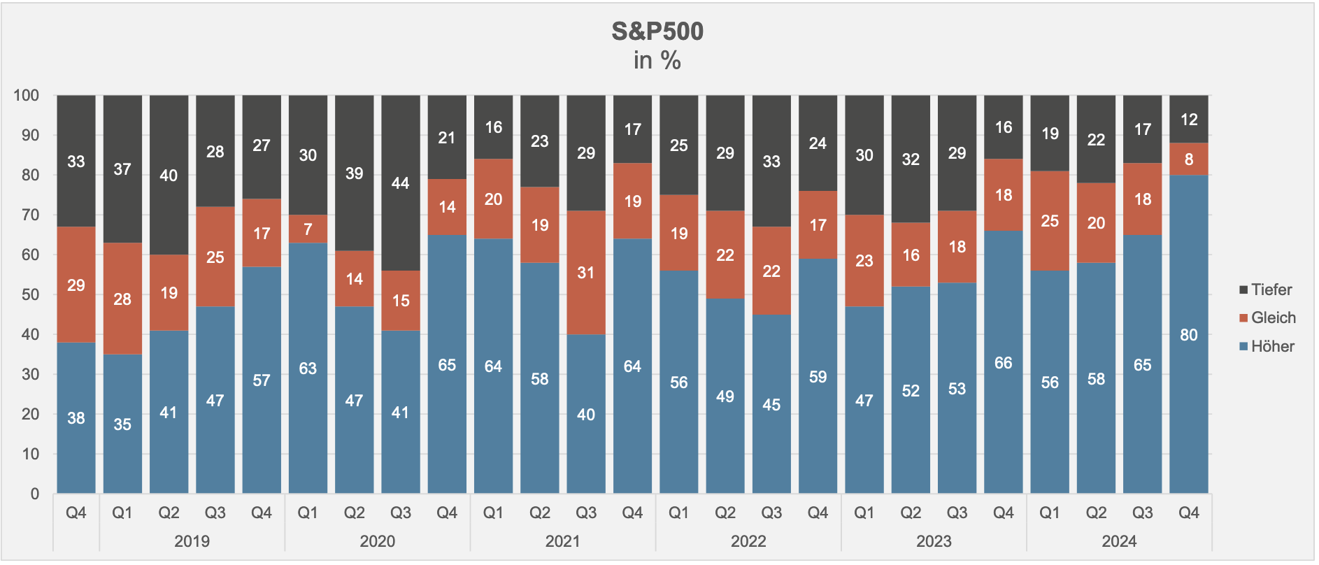 Anders beim S&P 500, bei dem sich die von US-Präsident Trump ausgelöste Euphorie deutlich zeigt: 80 Prozent der EAMs gehen nun von steigenden Aktienkursen aus, während es im Vorquartal nur 65 Prozent gewesen waren (vgl. nachstehende Grafik).