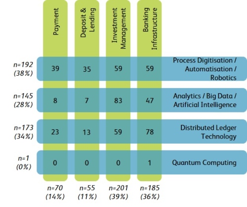 Die Schweizer Fintechs konzentrieren sich grösstenteils auf Investment Management sowie Bankeninfrastruktur. Dabei setzen sie auf eine Mischung aus bereits bewährten Lösungen wie Prozessautomatisierung und innovativen Ansätzen, wie künstlicher Intelligenz (KI), Big Data oder Distributed Ledger Technology (Blockchain). Neu hinzu kommt Quantum Computing, das 2024 erstmals als Geschäftsfeld von Startups identifiziert wurde.