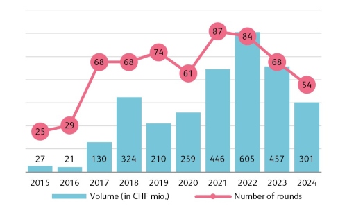 Die Finanzierungsdynamik im Fintech-Sektor hat spürbar nachgelassen. Das Venture-Capital-Volumen sank 2024 auf 301 Millionen Franken; nur halb so viel wie noch 2022. Besonders betroffen davon sind Startups in der Frühphase, da Investoren zurückhaltender agieren und auf Geschäftsmodelle mit klarerer Skalierbarkeit setzen.