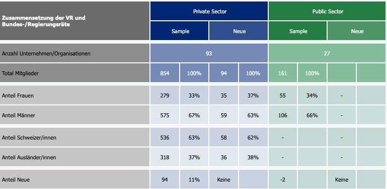 In den Präsidien der Unternehmen dominieren generell nach wie vor Schweizer Männer. Beispiele wie Ursula Nold (Migros), Suzanne Thoma (Sulzer) oder Petra Rumpf (Straumann) bilden die Ausnahme. Insbesondere in den Verwaltungsräten der Bank Vontobel, Swiss Re oder Zurich sind weiterhin männliche Netzwerke tonangebend.