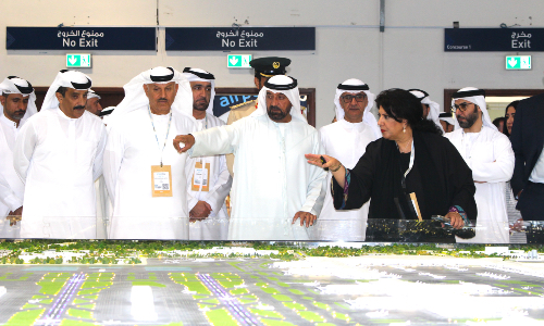 Scheich Ahmed Bin Saeed Al Maktoum, Chairman und CEO von Emirates Airline, begutachtet ein Modell des neuen Flughafens Dubai Al Maktoum International. (Bild: Gérard Al-Fil)