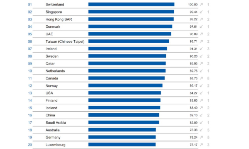 Auf den Rängen zwei und drei folgen in diesem Jahr die Stadtstaaten Singapur und Hongkong. Unter den Top-10 finden sich aus Europa noch Dänemark (Rang 4), Irland (Rang 7), Schweden (Rang 8) und die Niederlande (Rang 10) wieder. Aus Asien schafft es noch Taiwan (Rang 6) und aus dem Nahen Osten die vereinigten Arabischen Emirate (Rang 5) und Katar (Rang 9) in die Spitzengruppe.