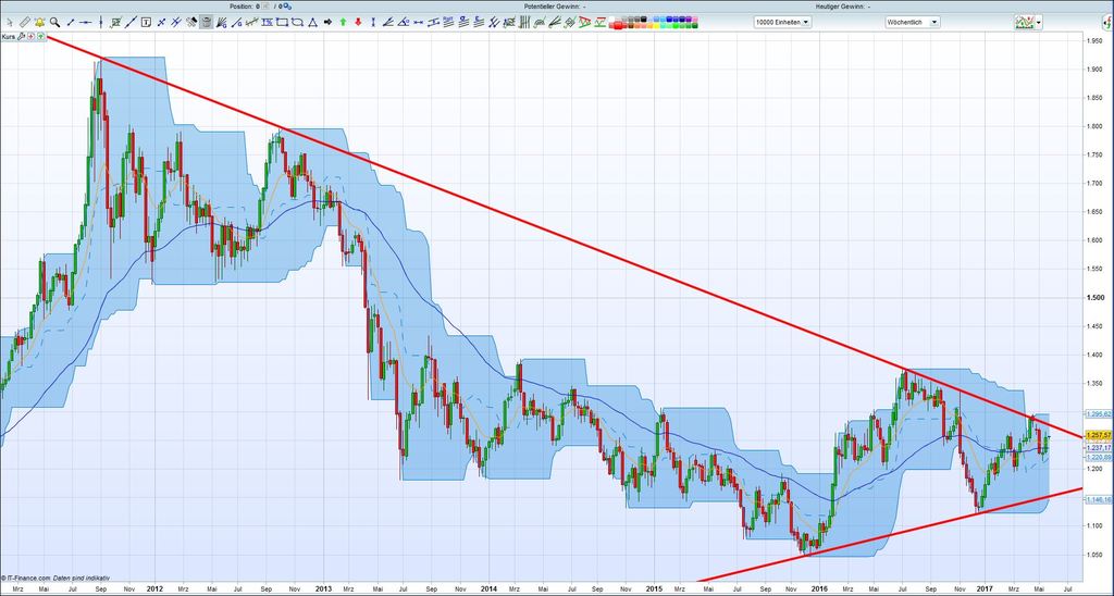 Auch in der vergangenen Woche fand die dynamische Aufwärtsbewegung kurz vor Erreichen dieser Marke ein jähes Ende. Ohne fundamentalen Grund (etwa ein Amtsenthebungsverfahren Trump) sieht es vom Chartbild derzeit jedoch eher schwierig aus diese Marke zu überwinden.