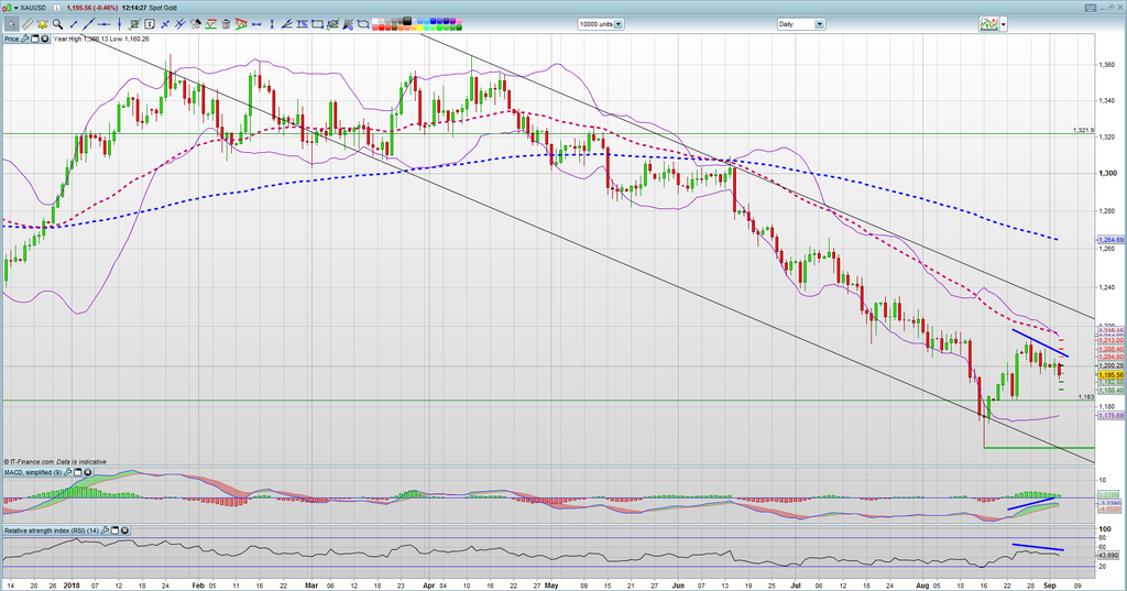 Ein positives Signal für Gold läge vor, wenn der Kurs den 50-Tage-EMA, der aktuell bei 1.217 Dollar liegt, nach oben durchkreuzt. Dies wäre jedoch erst möglich, wenn ein deutlicher Einbruch beim Dollar zu verzeichnen wäre, was aufgrund der Spannungen bei den Handelsfragen mit China, der positiven Vorgaben der US-Wirtschaft und der schwelenden Emerging-Market-Krise nur schwer vorstellbar sein dürfte.