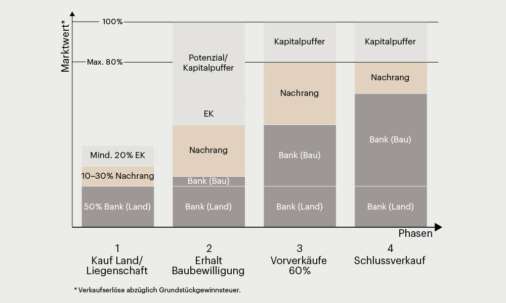 Der Bedarf an komplementären und alternativen Finanzierungsformen wächst seit Jahren, da die traditionellen Kapitalgeber bei der Vergabe von Krediten oft limitiert sind. Property One ermöglicht massgeschneiderte Finanzierungslösungen für Promotionsobjekte.