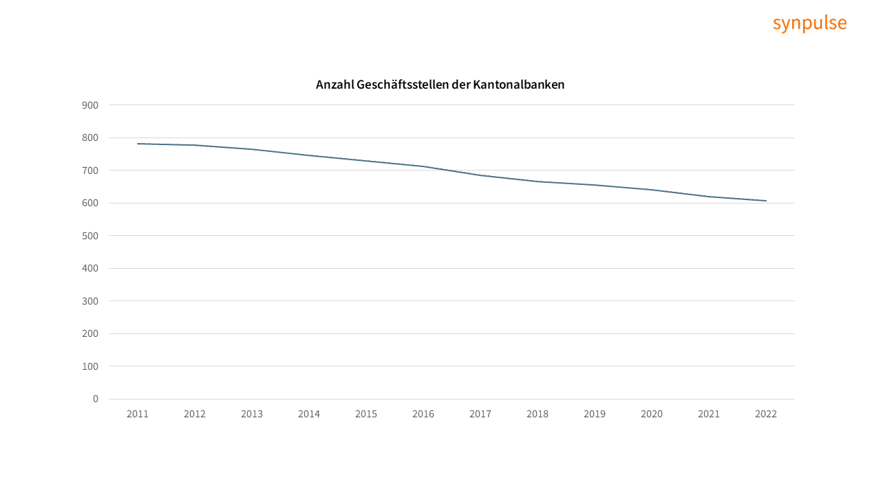 Die Antwort lautet: beide, aber auf unterschiedliche Weise. Die Banken haben über die letzten 10+ Jahre Geschäftsstellen abgebaut, siehe Beispiel der Kantonalbanken1 (Abbildung 2). Das bestätigt den Trend, dass die traditionellen Vertriebskanäle an Bedeutung verlieren, jedoch haben Banken in der Schweiz in Bancassurance ein Potenzial, welches sie noch wenig ausgeschöpft haben.