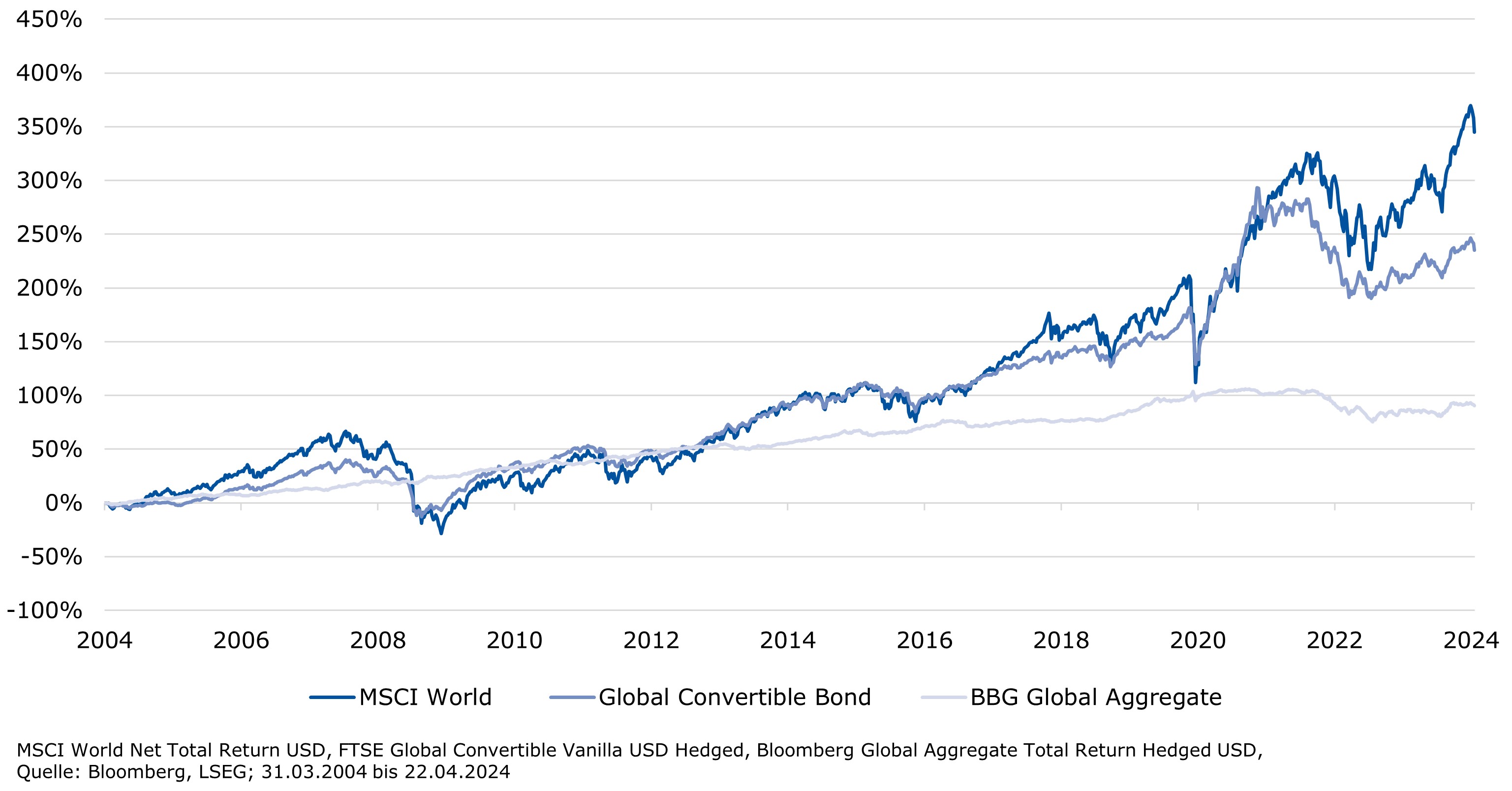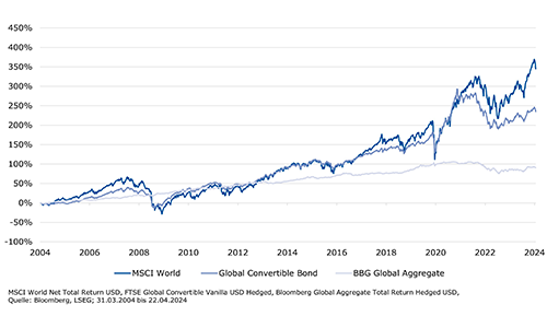 - Die Wachstumsdynamik bleibt heterogen, die Inflationsentwicklung und die Geldpolitik stehen weiterhin im Fokus und dürften die Volatilität an den Finanzmärkten hochhalten. Die Vergangenheit hat gezeigt, dass sich Wandelanleihen besonders in Zeiten grösserer Unsicherheit dank ihres asymmetrischen Rendite-Risiko-Profils am besten entwickeln.