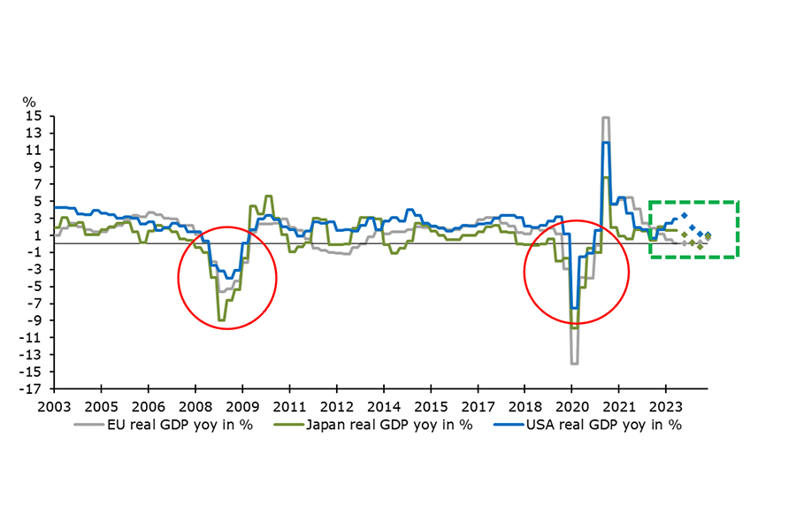 Aufgrund des höheren Zinsumfeldes (und der damit verbundenen gestiegenen Kapitalkosten für die Unternehmenswelt) rechnen wir allerdings mit leicht höheren zyklischen Unternehmensausfall-Quoten, doch von einer Finanzkrise wie im Jahr 2008 sind wir heute aus verschiedenen fundamentalen Gründen weit entfernt.