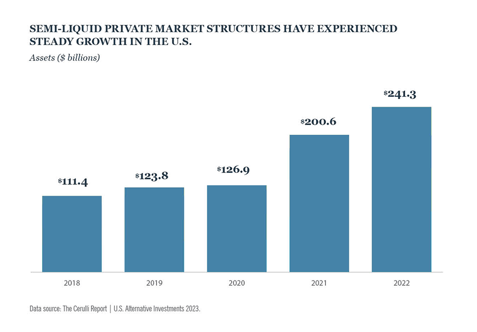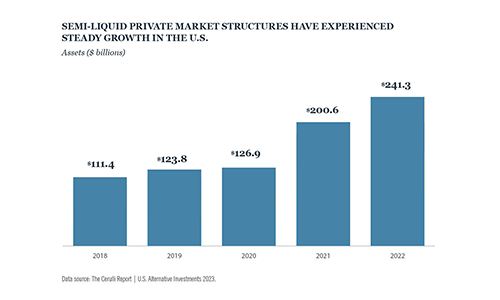In den USA weisen semi-liquide Instrumente an privaten Märkten ein stetiges Wachstum auf.