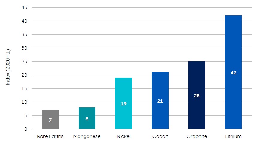 Der Umfang dieser Nachfrage wird jedoch oft unterschätzt. Solar- und Windkraftanlagen sowie Batterien für Energiespeichersysteme benötigen grosse Mengen an spezifischen Mineralien, um effizient und zuverlässig zu funktionieren.