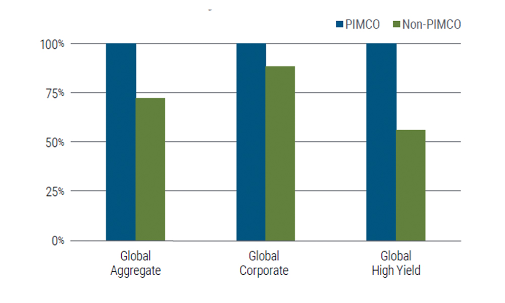 In einem sich ständig wandelnden Investmentumfeld kann es sich für Anleger in hohem Masse auszahlen, eine einen führenden Obligationenmanager auszuwählen. Pimcos Erfolgsquote liegt bei Weitem über dem Durschnitt der Wettbewerber, da ausnahmslos alle Pimco-Fonds ihre Morningstar-Peergroup-Kategorien in den vergangenen zehn Jahren übertroffen haben.