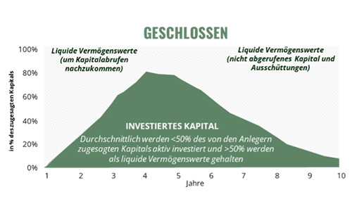 Investitionen in geschlossene Fonds sind in der Regel für die Dauer der Fondslaufzeit, in der Regel zehn bis zwölf Jahre, gebunden, und die Ausschüttungen erfolgen während der Laufzeit des Fonds nach und nach, wenn die zugrunde liegenden Investitionen verkauft werden.