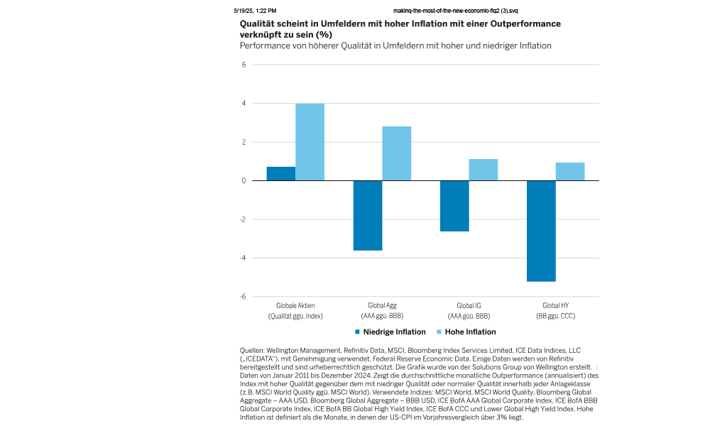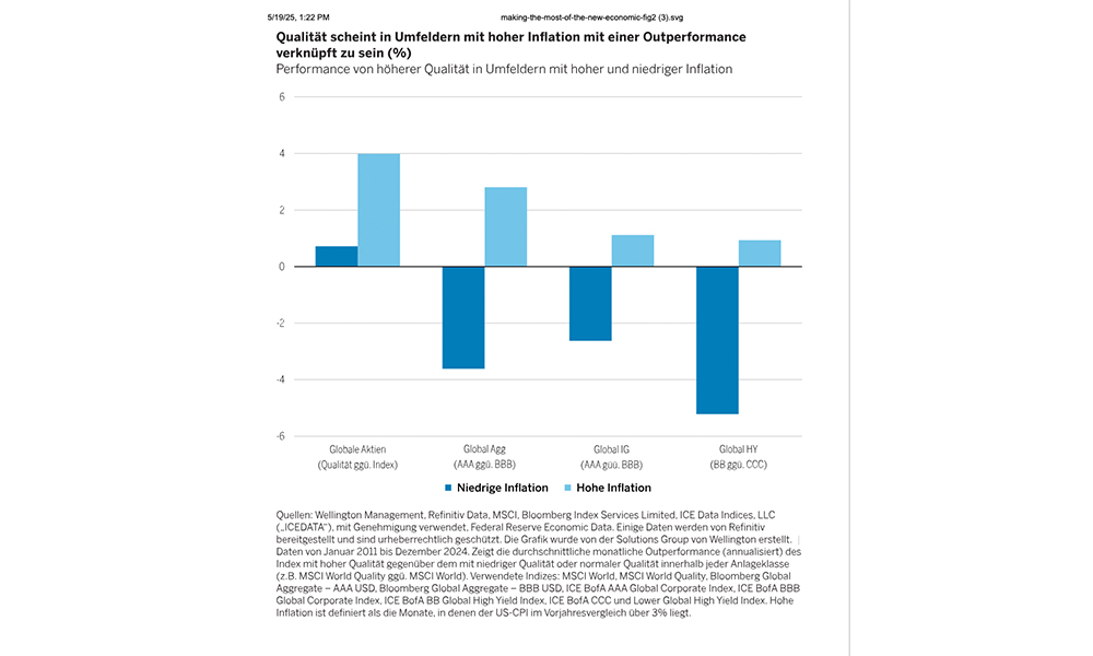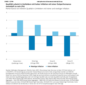 Es hat sich ausserdem gezeigt, dass Qualität mit einer grösseren Wahrscheinlichkeit für eine Outperformance in Umfeldern mit hoher Inflation verknüpft ist (Abbildung 2).