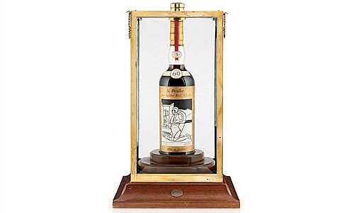 Der dargebotene Whisky zählt zu einer limitierten Reihe von nur zwölf Flaschen, die im Jahr 1986 abgefüllt wurden. Gebrannt hatte ihn die Brennerei Macallan im Norden Schottlands. Er reifte zuvor 60 Jahre lang in Fässern. Die Etiketten entwarf der italienische Pop-Art-Künstler Valerio Adami.