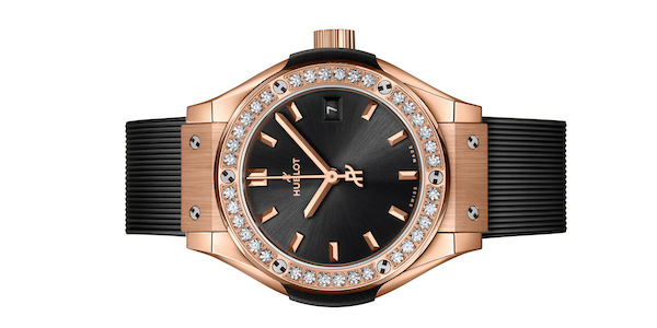 Ihre Linie Classic Fusion gibt es in einer dem Handgelenk der Damen schmeichelnden Gehäuse-Grösse von 29 Millimetern, welche die markanten, etwas kantigen Design-Merkmale von Hublot mit Diamanten und weiblichem Charme herausfordert. Ganz in King Gold gehalten, einer Material-Eigenkreation von Hublot, lässt der Automatik-Chronograph Classic Fusion King Gold Diamonds mit 50 Tagen Gangreserve technisch keine Wünsche offen.