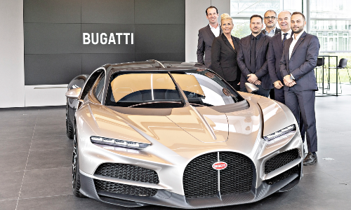 Der Bugatti Tourbillon, ein 1,800 PS starkes Fahrzeug, bricht mit der Tradition der Namensgebung nach berühmten Bugatti- Rennfahrern und trägt stattdessen den Namen «Tourbillon», eine Hommage an die französische Uhrmacherkunst und Bugattis Erbe. Camiña hebt die Innovationen des neuen Modells hervor: «Man geht mit einem Hybrid- Antrieb in die Moderne, aber bleibt dennoch dem technischen Erbe treu.» Die Inneneinrichtung des Bugattis enthält keinen Schnick-Schnack, wie zum Beispiel, Bildschirme, die nur das Armaturenbrett zukleistern würden. Man möchte sich auf das Wesentliche konzentrieren. «Der neue Bugatti ist ein Auto zum Fahren. Nicht zum Telefonieren, Arbeiten oder Picknicken. Es geht um den Spass beim Fahren», sagt Camiña.