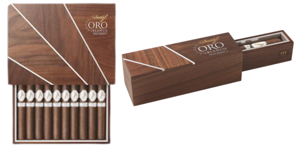 Neue «Oro Blanco Special Reserve 111 Years»: 10er-Box (links), Einzelzigarre (rechts). (Bild: Oettinger Davidoff, zVg)
