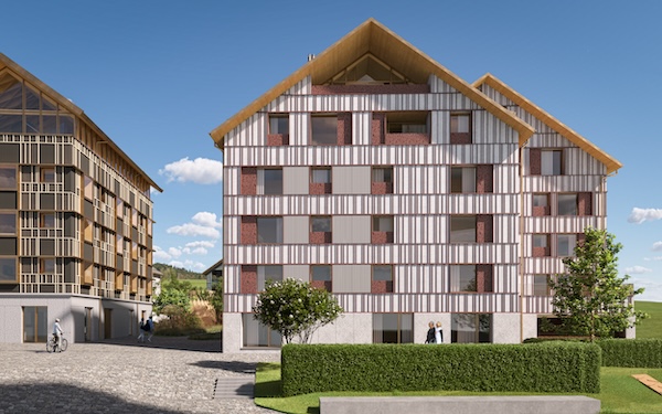 Skizze der Aussenansicht mit den fertiggestellten verbleibenden Häusern. (Bild: zVg)