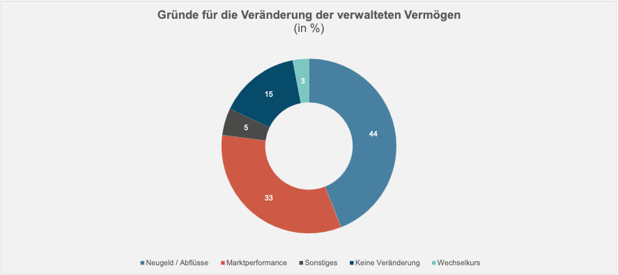Tuttavia, a causa delle turbolenze che circondano CS, anche i gestori patrimoniali indipendenti hanno potuto beneficiare di elevati afflussi di nuovi capitali, come mostra anche l'indagine. Esattamente il 52% dei partecipanti al sondaggio ha registrato un aumento significativo dei fondi dei clienti negli ultimi sei mesi.
