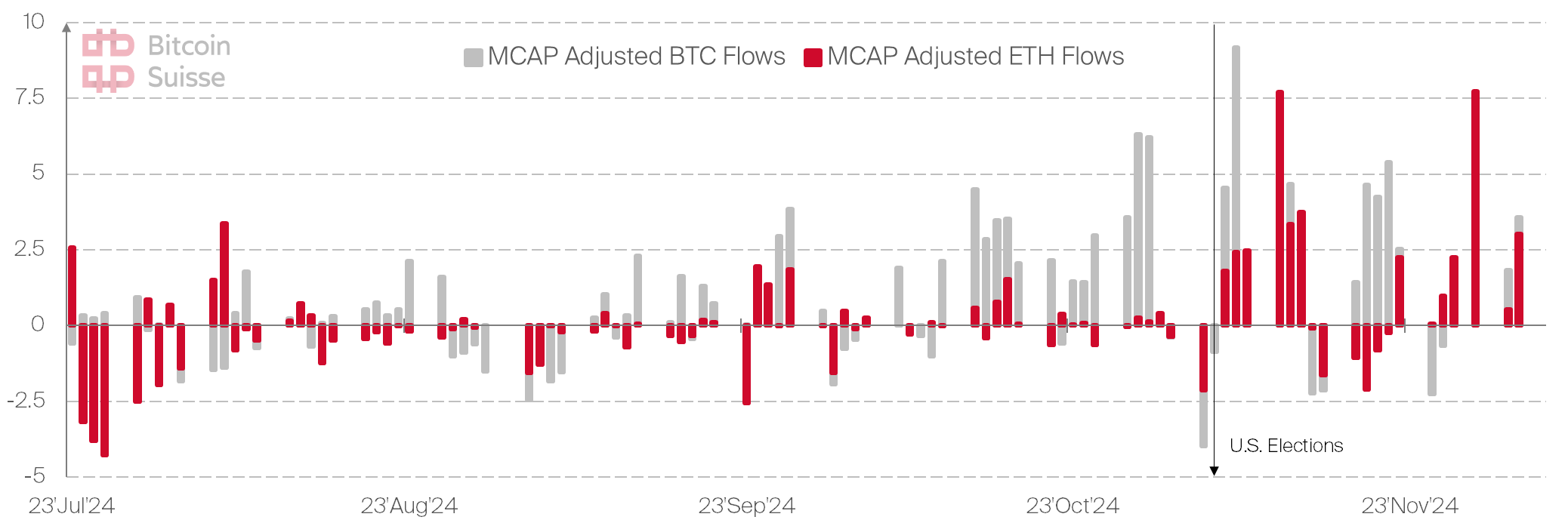 Secondo le sue stime, il 2025 potrebbe anche diventare l'anno degli ETF su Ethereum. Anche in questo caso, l’effetto Trump avrebbe un peso significativo. I flussi giornalieri hanno iniziato a mostrare segnali positivi proprio il giorno delle elezioni statunitensi.
