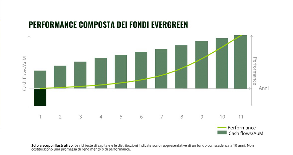I fondi Evergreen hanno il potenziale per migliorare i rendimenti grazie alla loro struttura unica. Consentono la liquidazione totale fin dal primo giorno e le distribuzioni vengono reinvestite con lo stesso obiettivo di rendimento annuale.